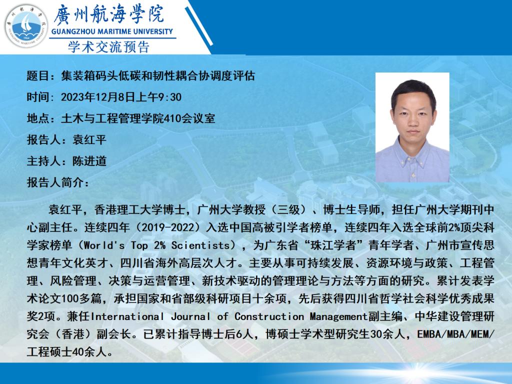 学术讲座预告——袁红平博士《集装箱码头低碳和韧性耦合协调度评估》-欧美精品日韩二区三区_欧美精品亚洲精品日韩专区_欧美日韩人妻精品系列一区二区三区_91在线无码精品秘 入口91_日韩人妻无码精品无码中文字幕_精品少妇人妻av无码久久_精品人妻无码一区二区色欲AⅤ_精品久久久久久人妻无码中文字幕_91人妻人人澡人人爽人人精品_久久午夜无码鲁丝片午夜精品_精品久久久久久人妻无码中文字幕