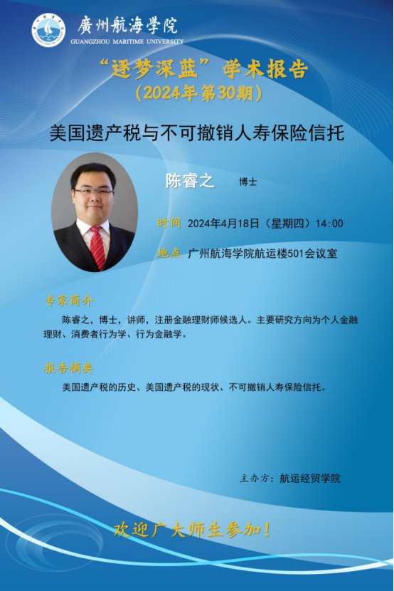 “逐梦深蓝”学术讲座预告(第30期):陈睿之《美国遗产税与不可撤销人寿保险信托》-欧美精品日韩二区三区_欧美精品亚洲精品日韩专区_欧美日韩人妻精品系列一区二区三区_91在线无码精品秘 入口91_日韩人妻无码精品无码中文字幕_精品少妇人妻av无码久久_精品人妻无码一区二区色欲AⅤ_精品久久久久久人妻无码中文字幕_91人妻人人澡人人爽人人精品_久久午夜无码鲁丝片午夜精品_精品久久久久久人妻无码中文字幕