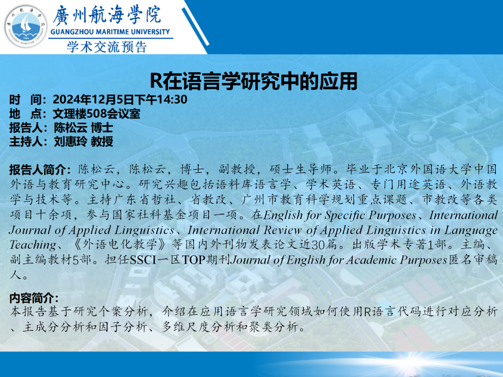 “逐梦深蓝”学术讲座预告:陈松云《R在语言学研究中的应用》