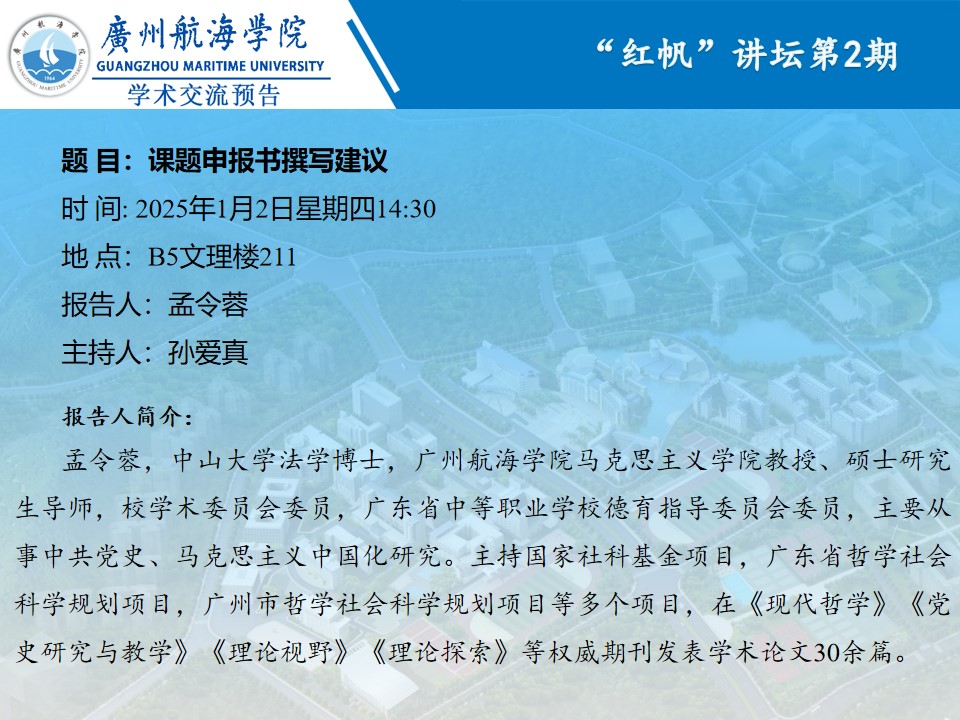 “红帆”讲坛系列学术讲座预告:孟令蓉《课题申报书撰写建议》