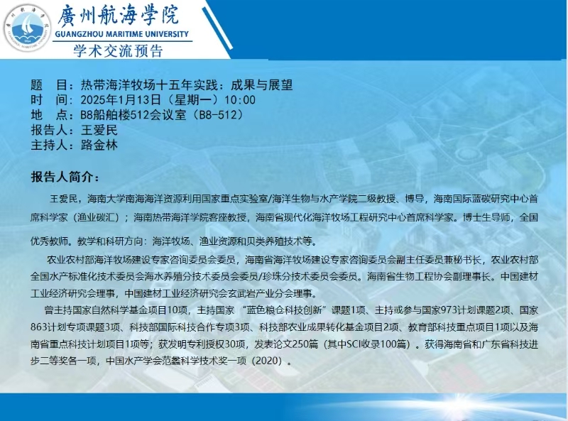 学术讲座预告:王爱民《热带海洋牧场十五年实践:成果与展望》-欧美精品日韩二区三区_欧美精品亚洲精品日韩专区_欧美日韩人妻精品系列一区二区三区_91在线无码精品秘 入口91_日韩人妻无码精品无码中文字幕_精品少妇人妻av无码久久_精品人妻无码一区二区色欲AⅤ_精品久久久久久人妻无码中文字幕_91人妻人人澡人人爽人人精品_久久午夜无码鲁丝片午夜精品_精品久久久久久人妻无码中文字幕