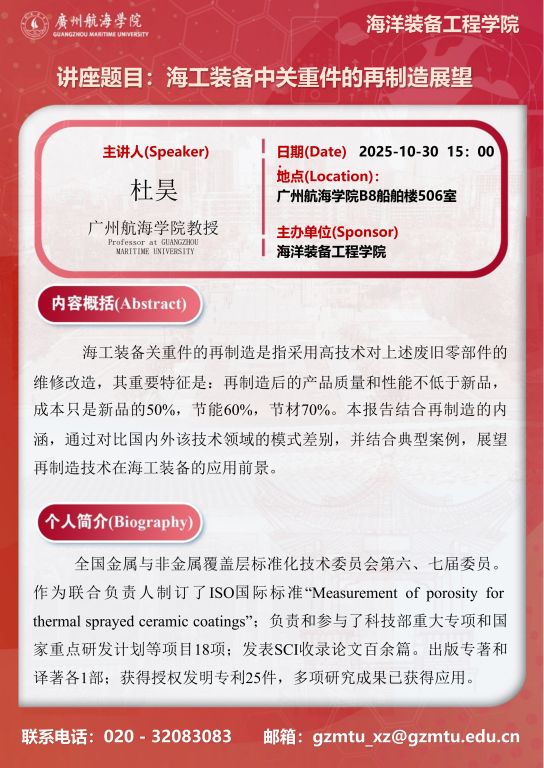 学术讲座预告:杜昊 《海工装备中关重件的再制造展望》-欧美精品日韩二区三区_欧美精品亚洲精品日韩专区_欧美日韩人妻精品系列一区二区三区_91在线无码精品秘 入口91_日韩人妻无码精品无码中文字幕_精品少妇人妻av无码久久_精品人妻无码一区二区色欲AⅤ_精品久久久久久人妻无码中文字幕_91人妻人人澡人人爽人人精品_久久午夜无码鲁丝片午夜精品_精品久久久久久人妻无码中文字幕