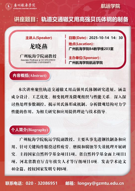 学术讲座预告:龙晓燕《轨道交通辙叉用高强贝氏体钢的制备》-欧美精品日韩二区三区_欧美精品亚洲精品日韩专区_欧美日韩人妻精品系列一区二区三区_91在线无码精品秘 入口91_日韩人妻无码精品无码中文字幕_精品少妇人妻av无码久久_精品人妻无码一区二区色欲AⅤ_精品久久久久久人妻无码中文字幕_91人妻人人澡人人爽人人精品_久久午夜无码鲁丝片午夜精品_精品久久久久久人妻无码中文字幕