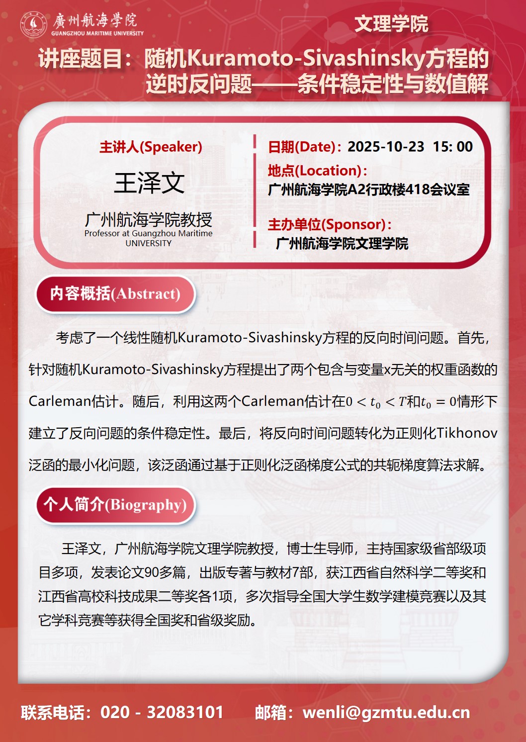 学术讲座预告:王泽文《随机Kuramoto-Sivashinsky方程的逆时反问题——条件稳定性与数值解》-欧美精品日韩二区三区_欧美精品亚洲精品日韩专区_欧美日韩人妻精品系列一区二区三区_91在线无码精品秘 入口91_日韩人妻无码精品无码中文字幕_精品少妇人妻av无码久久_精品人妻无码一区二区色欲AⅤ_精品久久久久久人妻无码中文字幕_91人妻人人澡人人爽人人精品_久久午夜无码鲁丝片午夜精品_精品久久久久久人妻无码中文字幕
