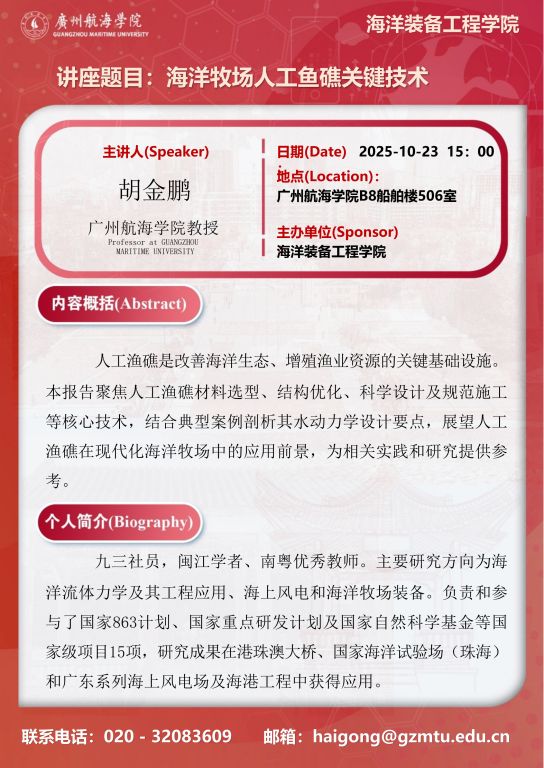 学术讲座预告:胡金鹏 《海洋牧场人工鱼礁关键技术》-欧美精品日韩二区三区_欧美精品亚洲精品日韩专区_欧美日韩人妻精品系列一区二区三区_91在线无码精品秘 入口91_日韩人妻无码精品无码中文字幕_精品少妇人妻av无码久久_精品人妻无码一区二区色欲AⅤ_精品久久久久久人妻无码中文字幕_91人妻人人澡人人爽人人精品_久久午夜无码鲁丝片午夜精品_精品久久久久久人妻无码中文字幕